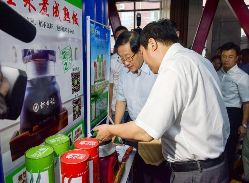 中國(guó)糧油學(xué)會(huì)理事長(zhǎng)張桂風(fēng)、省糧食局局長(zhǎng)胡新明調(diào)研蝦鄉(xiāng)食品